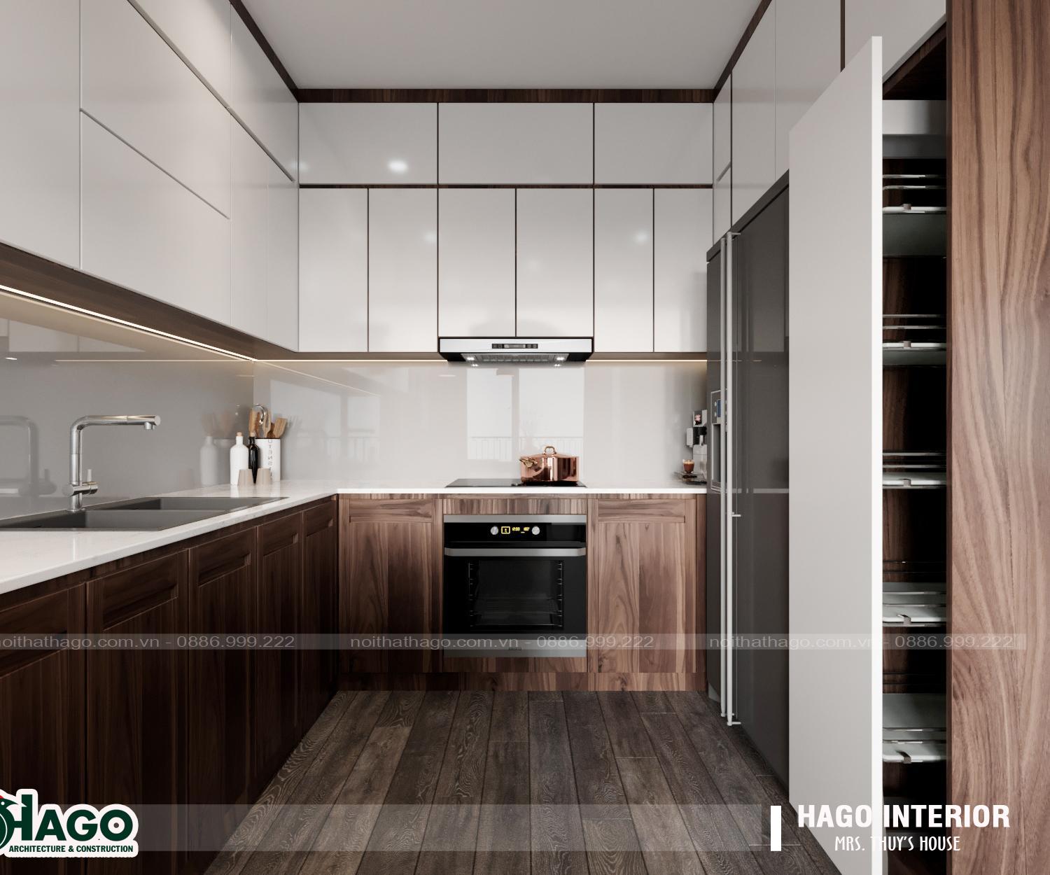 Nội thất không gian phòng bếp ấm cúng, tiện nghi