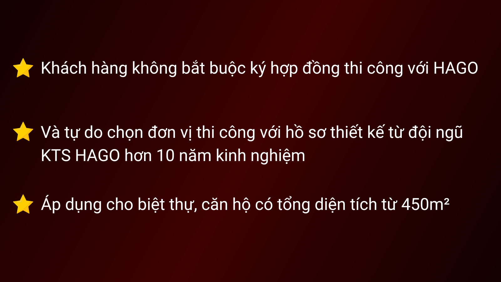 Giảm 30% – 100% chi phí thiết kế khi thi công trực tiếp tại Hago giúp tối ưu chi phí cho gia chủ.